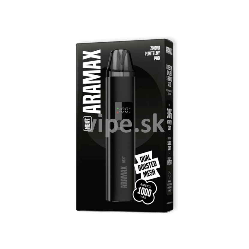 1× zariadenie ARAMAX NEXT Pod 1× cartridge s odporom 0.8Ω (dual boosted mesh) 1× používateľský manuál