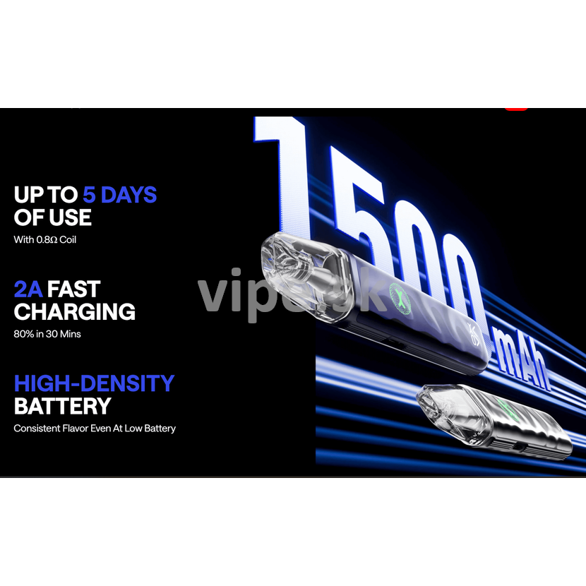 Zariadenie je vybavené integrovanou batériou s kapacitou 1500mAh, ktorá zabezpečí dostatok energie na celodenné používanie. USB-C nabíjanie umožňuje rýchle doplnenie kapacity, takže nebudete dlho čakať. Výkon v rozsahu 5–30W umožňuje prispôsobiť si zážitok podľa vlastných preferencií, a vďaka širokému rozsahu odporov (0.3–3.0Ω) je Xlim Go 2 vhodný pre MTL aj RDL štýl vapovania.
