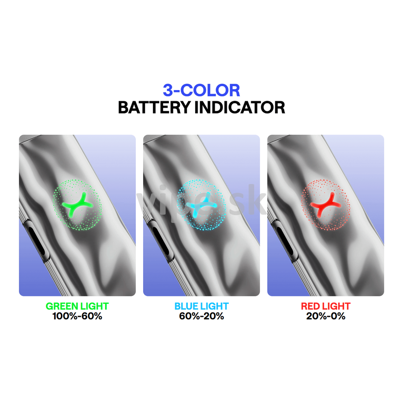 Nechýba ani nastaviteľný airflow, ktorý umožňuje presné doladenie prívodu vzduchu pre ideálnu rovnováhu medzi chuťou a produkciou pary. Dizajn zariadenia je moderný a prémiový – ľahká konštrukcia z PCTG a IML váži iba 45.9 g a vďaka kompaktným rozmerom sa pohodlne zmestí do vrecka či tašky. Zaujme aj dynamické LED podsvietenie, ktoré reaguje na každý potiahnutý ťah a dodáva zariadeniu futuristický vzhľad.
