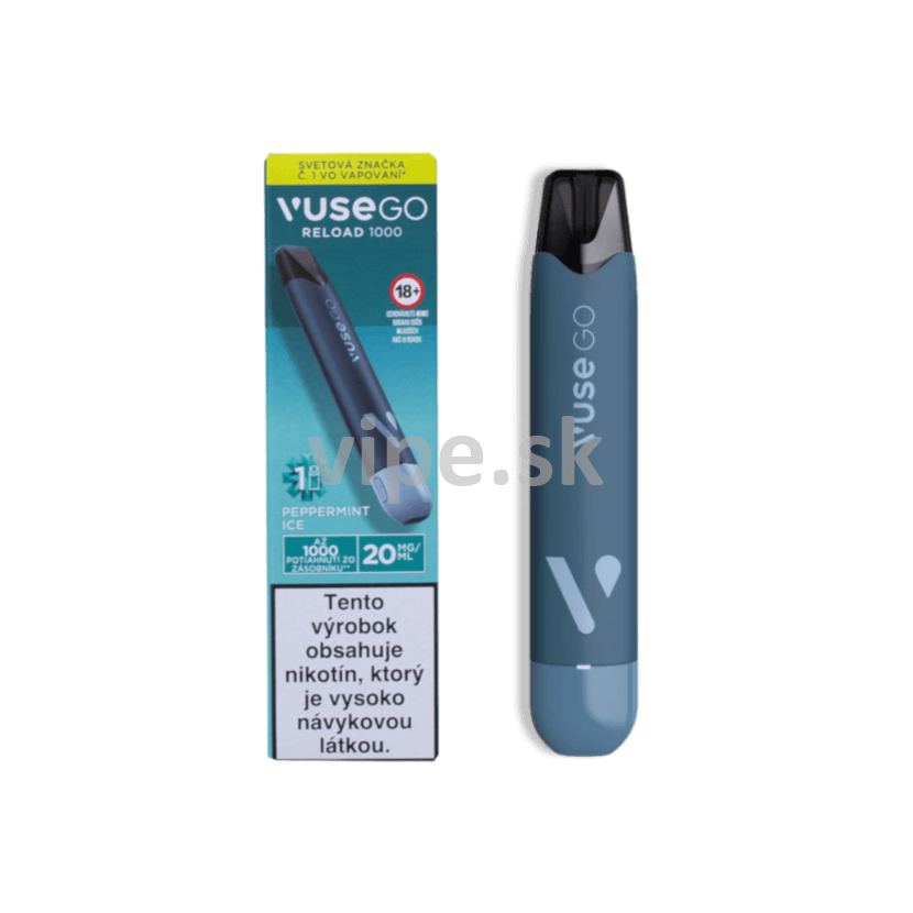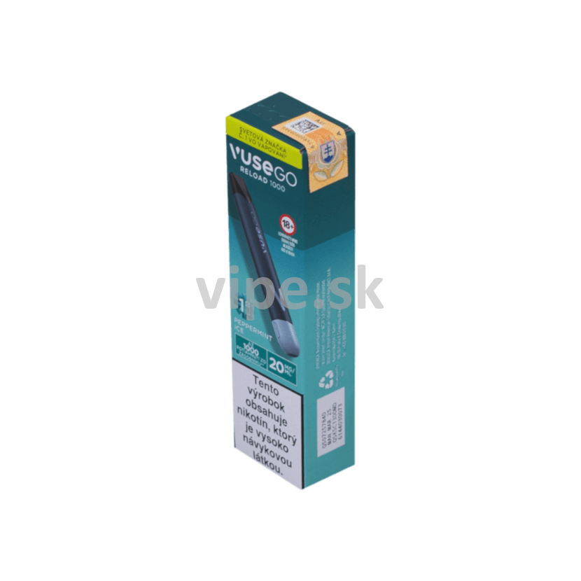Vuse GO Reload 1000 obsahuje osviežujúcu príchuť Peppermint Ice s obsahom nikotínu 20 mg.