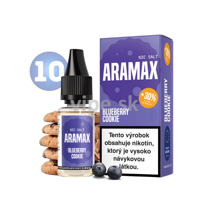 Parametre produktu e-liquid Aramax Salt 10ml BLUEBERRY COOKIE 10mg