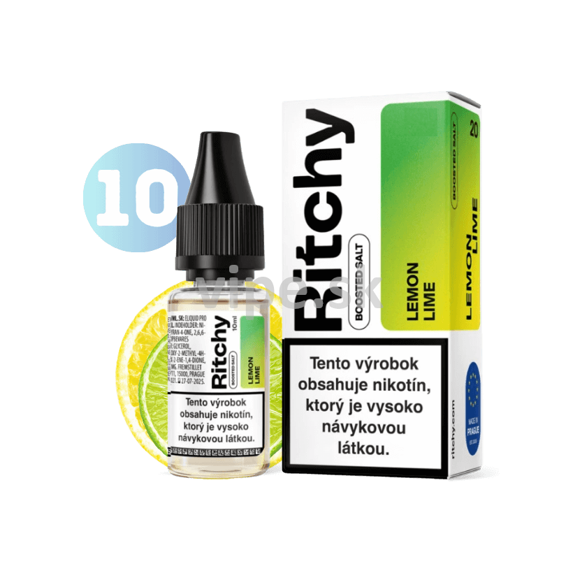 Parametre produktu e-liquid Ritchy Salt LEMON LIME 10ml 10mg